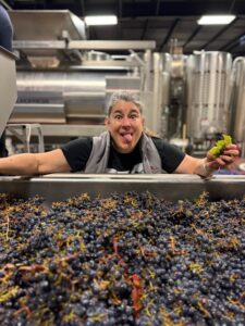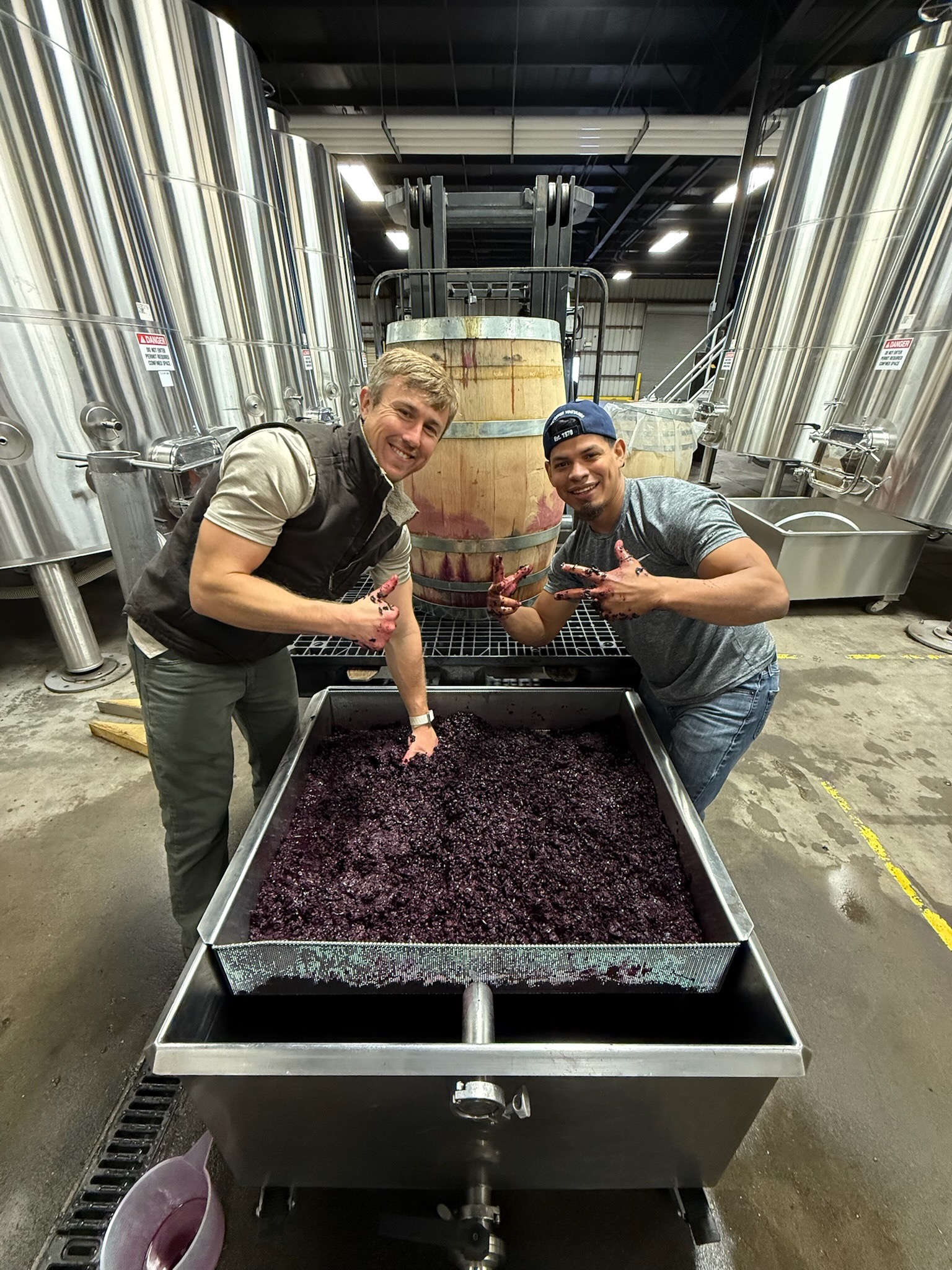 It’s becoming something of an end-of-harvest tradition to hand press our teeny weeny lot of Cabernet Sauvignon from Ryan’s Vineyard. Mike and our friend Andres got their arm workout, and we got some delicious juice for the 2025 vintage.Clearly, Jaime is having too much fun at the sorting table!